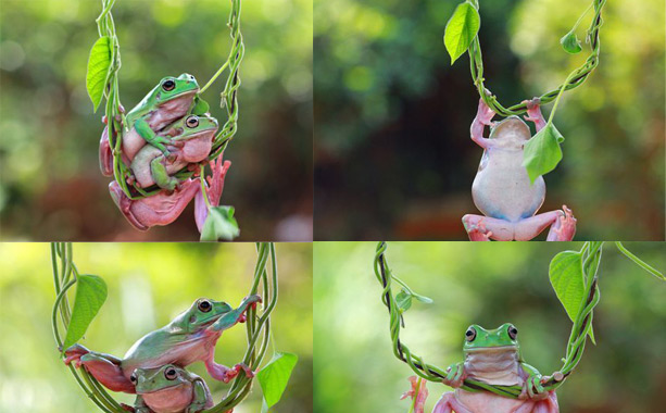 今天在中國日報網,看到由印尼攝影師Kurit Afsheen拍攝的一組3只小青蛙掛在樹藤上做空中瑜伽的有趣圖片。從肩部拉伸到平板支撐,這三個小家伙擠在一根樹藤上,大秀身手,看來是又要火一把的節奏。看看,動物都這么拼了,我們做辦公家具的是不是也要標新立異才能與眾不同呀!