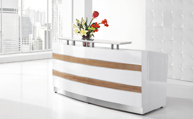隨著現代科技的不斷發展,前臺工作所用的辦公桌也越來越有型,不再只是單一的用于工作,還有很強的裝飾性能。典致小編為大家介紹幾款時尚潮流的前臺辦公桌,讓我們一起欣賞這兩款個性時尚的前臺辦公桌圖片吧!
