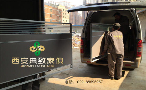 典致家俱的工人師傅們正在把我們精心設(shè)計(jì)制作的辦公桌依次裝車。