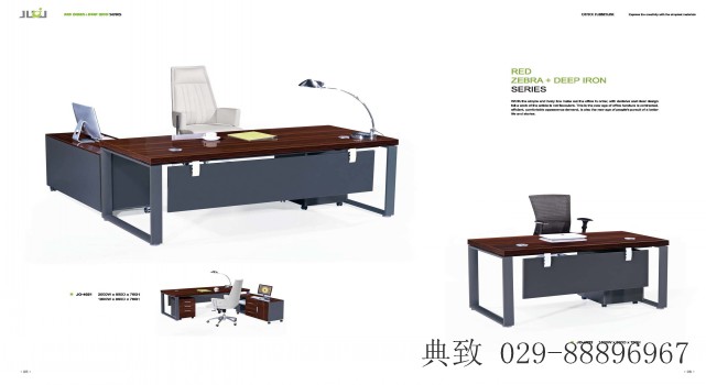 西安板式大班臺顏色:高亮光斑馬紋+鐵灰